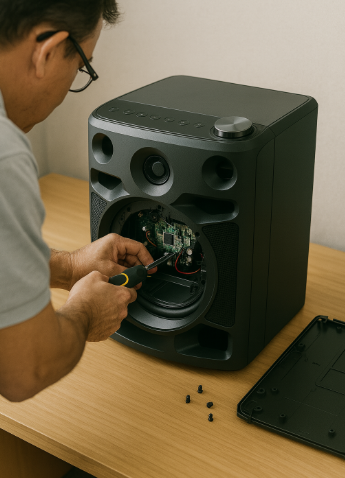 Reparamos cabinas de sonido, teatros en casa, barras de sonido y audífonos Sony con precisión y repuestos originales.